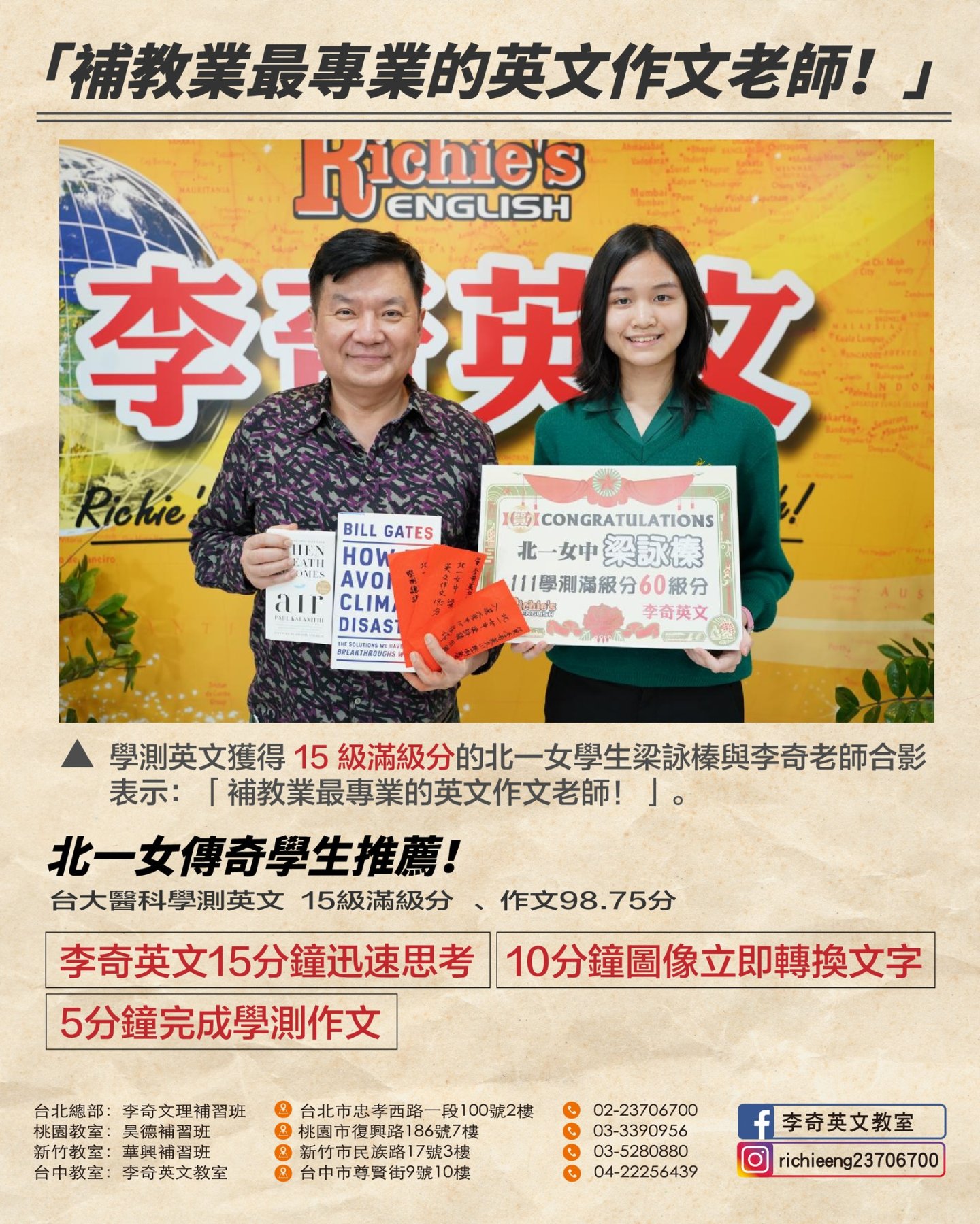 北一女傳奇學生推薦❗️台大醫科學測英文15級滿級分、作文98.75分